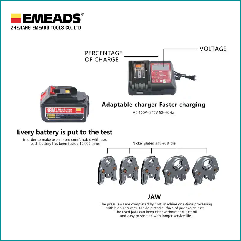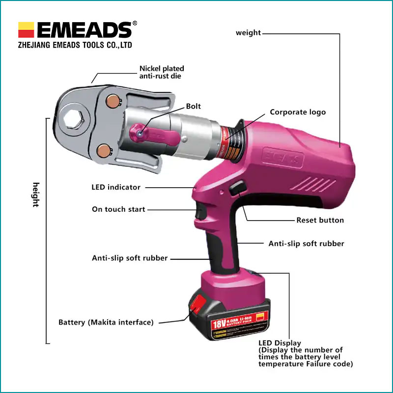 Le blianta de thaithí i dtáirgeadh Uirlisí Crimpála Hiodrálacha, is féidir le Zhejiang EMEADS Tools Co., Ltd raon leathan Uirlisí Hiodrálacha a sholáthar. Is féidir le hUirlisí Hiodrálacha ardchaighdeáin freastal ar go leor iarratas, más gá duit, le do thoil, faigh ár seirbhís tráthúil ar líne faoi Uirlisí Hiodrálacha. Chomh maith leis an liosta táirgí atá ann cheana féin thíos, is féidir leat freisin do uirlis rocadh hiodrálach Leictreach uathúil féin nó uirlis rocadh láimhe a shaincheapadh de réir do riachtanais shonracha. EMEADS sa rialú cáilíochta dian ag an am céanna a chur san áireamh an chustaiméara taithí seirbhíse is fearr.